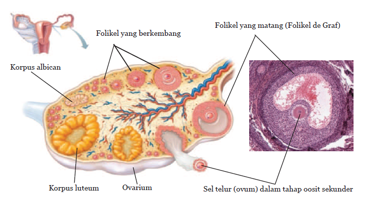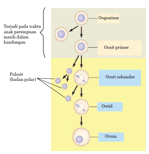 Oogenesis merupakan proses pembentukan sel kelamin wanita yaitu sel telur atau ovum yang terjadi di ovarium.